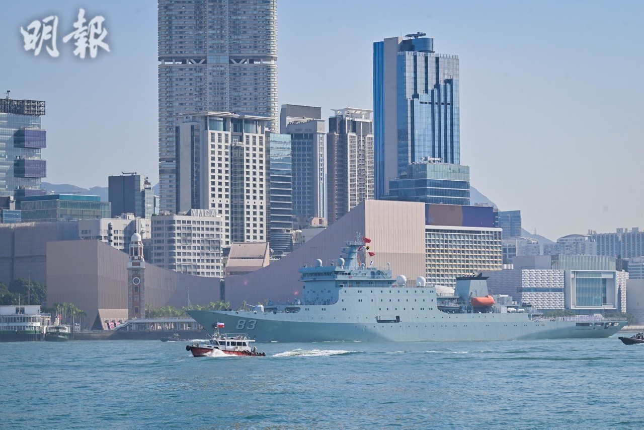 解放軍海軍戚繼光艦及沂蒙山艦今早抵達香港水域。新華社報道,兩艦由駐港解放軍的宿遷艦和特區政府船隻引航,駛向昂船洲軍營。