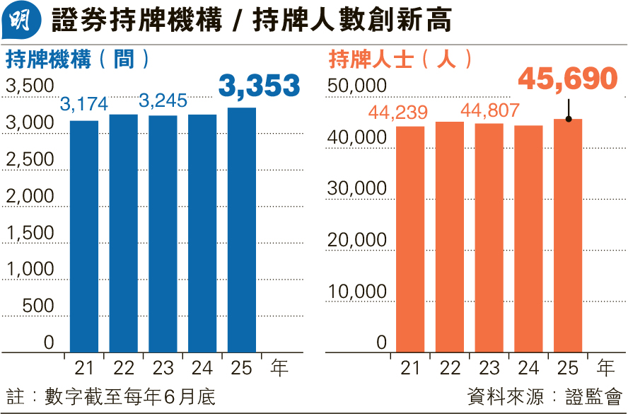 另葉志衡提到,截至6月底,本港證券及期貨的持牌機構及持牌人士,兩者均創新高(見圖)。