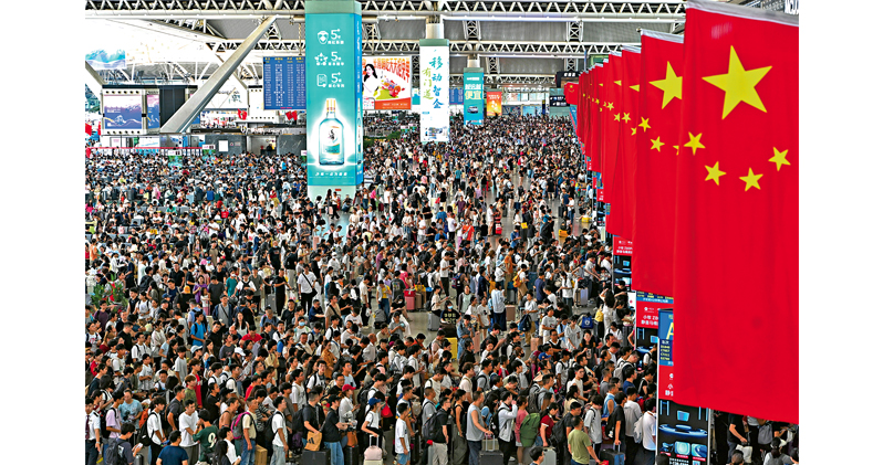 廣東交通部門數據顯示,全省高速公路在30日單日車流量,以1001.36萬車次打破歷史峰值,並首次突破「千萬車次」大關。此外,全國鐵路昨日亦迎來假期客流最高峰,預計發送旅客2300萬人次。一些大型高鐵站包括杭州東站通宵運營,車站特設夜間休息室,供乘客使用電動梳化。