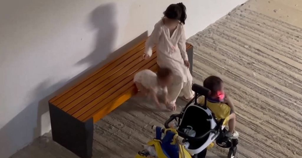 網上流傳片段所見,女嬰兒坐在過渡性房屋範圍內的長櫈,另一小童坐在嬰兒車,一名非華裔女童在女嬰旁邊,女嬰不斷哭喊,女童曾抱起嬰兒嘗試「氹」她,其後女童多次將女嬰從長椅上推落地,女嬰墮地後,女童又拉起她再放手扔落地