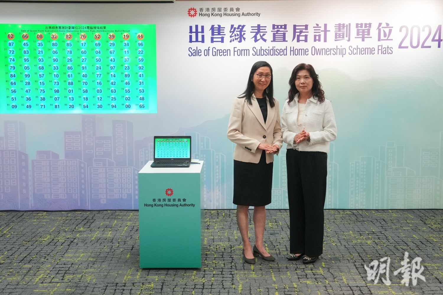 房委會今日(2日)為「綠置居2024」進行攪珠儀式。首十個號碼按序為:62、66、08、32、82、76、52、39、19、44。