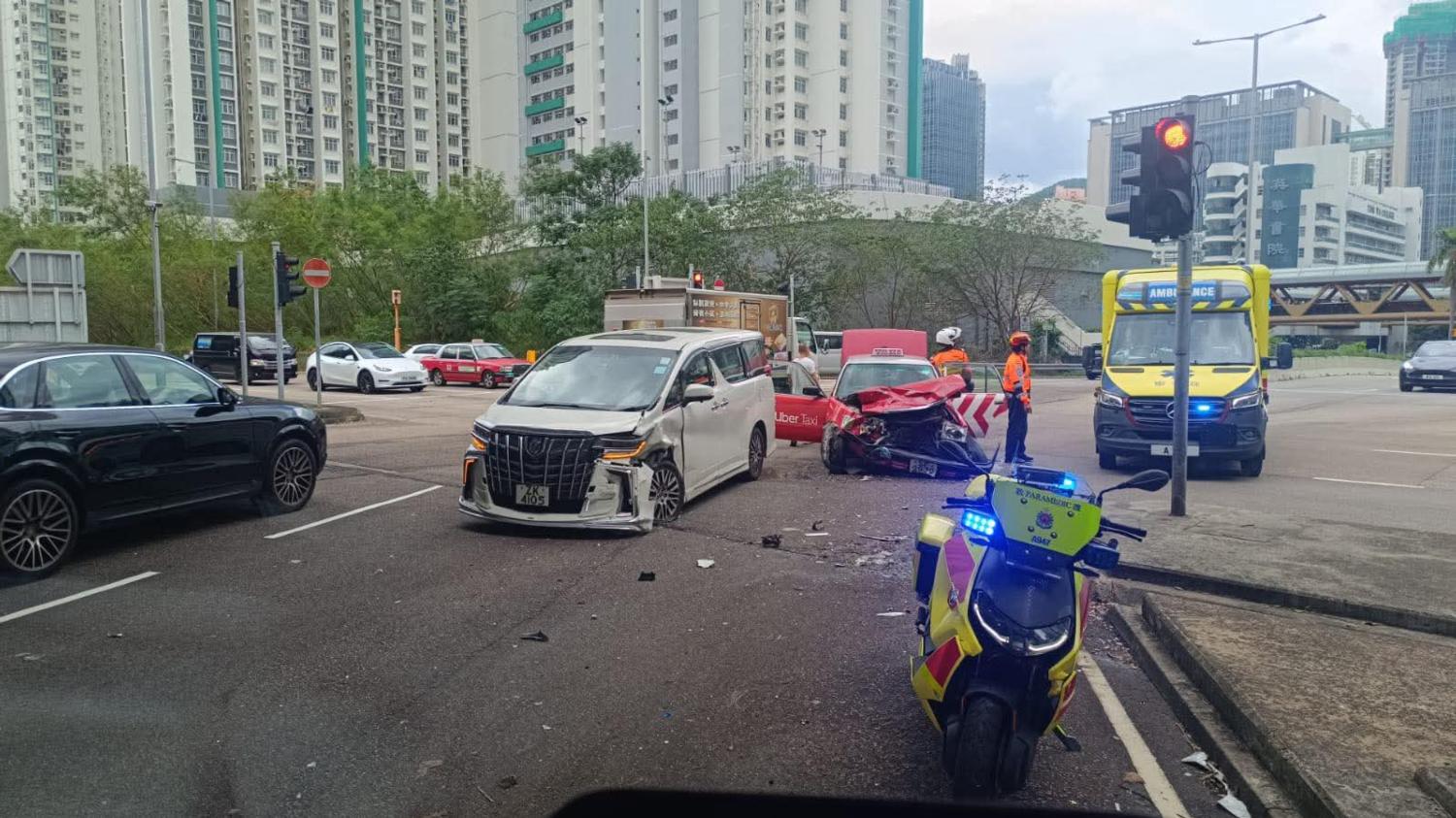 即時港聞 長沙灣的士七人車相撞5人傷 不排除有人疑衝紅燈肇禍 (19:24) 發佈於 2 個月 前 2025 年 10 月 4 日 By 明報 長沙灣連翔道及東京街西交界發生交通意外。今午(4日)3時許,一輛的士沿東京街西向昂船洲方向行駛,當駛至連翔道交界燈位時,突然遭一輛七人車猛撼,的士車頭嚴重損毀、七人車左邊車身車頭損毀,碎片散落一地。 救援人員到場替的士司機及的士上4名乘客初步治理後,5名傷者清醒由救護車送往明愛醫院治理。警方正調查意外成因,不排除有人衝紅燈肇禍。 相關文章:交通意外長沙灣 Up Next 任建峰被裁專業失當「釘牌」 聯合國人權理事會報告員形容是「報復」 律政司重申香港法治固若金湯 (18:28) 不要錯過 男子酒後失足從遊艇墮海 昏迷送院 (23:19) 繼續閱讀 贊助商 猜你喜歡 柴灣環翠道3車追撞 69歲私家車司機昏迷送院 (23:31) 豐物道貨車溜前 司機一度被困 涉酒駕被捕 (17:32) 將軍澳兩車迴旋處相撞 的士翻側司機一度被困 (17:02) 兩車柯士甸道相撞 兩司機受傷送院 (11:41) 葵盛圍巴士垃圾車的士三車相撞 12人受傷當中10人送院 (16:26) 馬鞍山54歲單車男落斜自炒昏迷 送院搶救不治 (14:18)