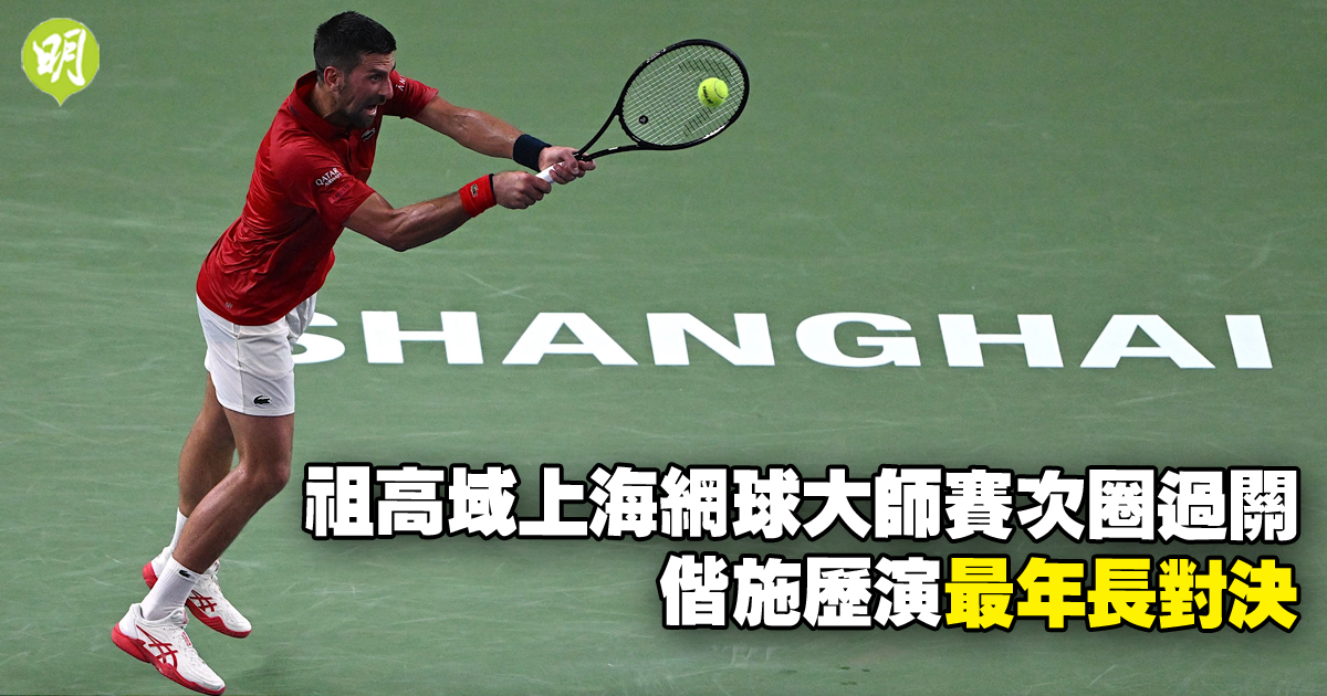 38歲塞爾維亞籍「前一哥」祖高域昨晚(3日)在ATP1000級別上海大師賽復出,在男單次圈與37歲克羅地亞籍球手施歷合演「最年長對決」,結果直落兩盤勝出過關。