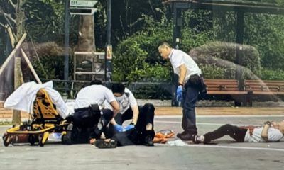 事發於昨日12時半,警方接獲途人報案,指海心公園涼亭位置有人遇襲。警員到場後,發現兩名男子倒臥於血泊中,兩人頸部均有受刀傷,現場留有大量鮮血。兩名傷者分別37歲姓霍以及25歲姓甄,其中,霍頸及膊頭受傷,甄則頸及胸部受傷,兩人在場經救護員初步急救後,由救護車送往伊利沙伯醫院搶救,當時兩人均陷入昏迷。