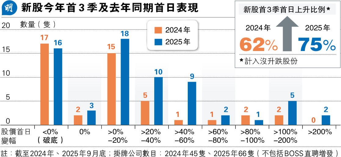 港IPO首3季集資升兩倍 首日贏錢比例增至75%