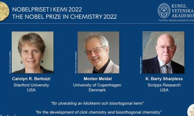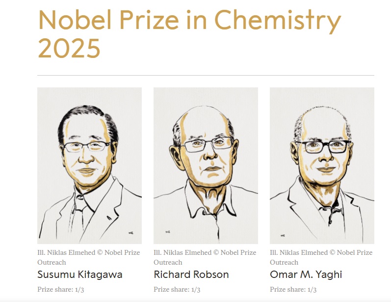 即時國際 諾貝爾獎|3學者分享化學獎 發展「金屬有機框架」獲表揚 (17:49) 發佈於 3 天 前 2025 年 10 月 8 日 By 明報 瑞典皇家科學院周三(8日)宣布,今年諾貝爾化學獎頒予北川進(Susumu Kitagawa)、羅布森(Richard Robson)及亞吉(Omar M. Yaghi),以表彰三人在金屬有機框架(metal-organic frameworks,MOFs)領域的開創性貢獻。 相關文章:2025年諾貝爾獎編輯推介諾貝爾化學獎 Up Next 緬甸軍方被指用動力滑翔傘投炸彈 釀數十死包括兒童 (00:28) 不要錯過 英警破歷來最大搶竊及手機走私集團 去年近4萬賊贓運中國 (15:12) 繼續閱讀 贊助商 猜你喜歡 諾貝爾獎|美大學3學者獲物理學獎 量子力學研究獲表揚 (18:01) 「破解蛋白質結構密碼」 美英3學者獲化學諾獎 諾貝爾化學獎 美英3學者研究蛋白質設計及結構預測奪獎 (17:56) 在美3科學家奪化學獎 名單早4小時外泄惹議 化繁為簡 3傑獲化學諾獎 助基因研究藥物研發 諾貝爾獎|化學獎頒予美國及丹麥3學者 其中一人第二度奪諾獎 (17:51)