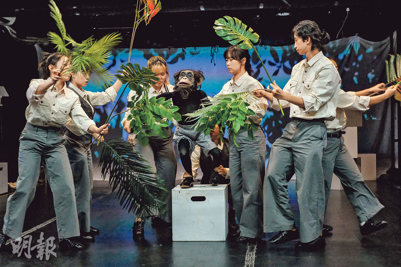 走入「猩猩」的視界,游走在猿與人之間,演員們又如何看馴化與自由的命題?演員林嘉婷說「人唔係高級過猩猩」,從演戲的角度切入,因為做人類角色時會調整個性、加上更多規限,反而演猩猩時更自由。另一位演員袁安婷則指操作人偶時比較直覺,「好似有一面牆可以匿埋」,更自在、安全地演出。人偶在劇場中活靈活現,但原來大部分演員本無操偶經驗,林嘉婷指早前團隊遠赴法國訓練4星期,由小偶到大偶逐步了解構造、掌握控制,從重心轉移到腳怎麼走、手怎麼擺一一鑽研,只為更真實呈現人偶的動態。操控人偶肢體動作也有別於平日的舞台劇,袁安婷說感覺是另一套語言,做人偶要很冷靜,不能太投入或緊張,也笑言操控人偶後身體「特定位置會好攰」。