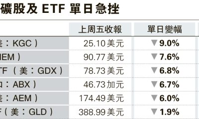 道指上周五在傳統消費股支持下,跌1.9%,收報45,479點,三大指數全周均下跌逾2%。中國周四公布,最終用途為研發生產14納米及以下邏輯晶片等稀土出口申請需逐案審批,或影響用於手機、人工智能等不同領域的半導體供應鏈,反映半導體企業表現的費城半導體指數上周五跌6.32%,台積電(美:TSM)跌6.41%,用於汽車、工業等傳統領域晶片的安森美(美:ON)亦跌8.47%。美國稀土股則大升,MP Materials(美:MP)升8.37%,NioCorp(美:NB)升5.59%。