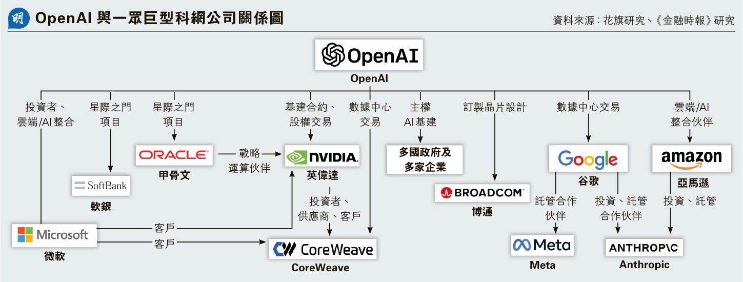 【明報專訊】近期市場出現多個與OpenAI有關的合作消息,多家涉事公司股價立即炒高,表表者如超微半導體(美:AMD)盤前飈28%,早前甲骨文(美:ORCL)市值曾急漲逾三成,令OpenAI如有點石成金之手。不過,外界開始質疑OpenAI盈利能力欠奉,近期交易金額卻異常龐大,計劃的訂單至少數千億美元,且與多家科網公司形成「循環關係」,或是人工智能(AI)泡沫徵兆。然而市場人士仍不能否定OpenAI影響力,認同公司確是AI界指標,市場終究不能避免其漣漪效應。