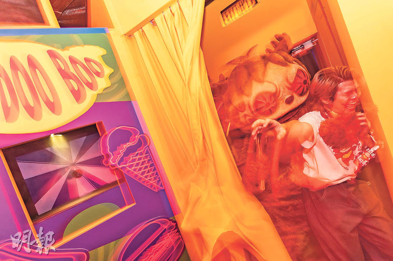 「怨靈盲盒」抓緊了近期大熱的「開盲盒」話題,把看似有趣可愛的玩具盲盒變成離奇詭異的玩具世界,玩家一個不留神便會被「玩具」嚇倒!其故事概念為曾被遺棄的盲盒玩具化身怨靈,誓要向人類復仇。盲盒玩具名為Voodoo Boo,設有不同顏色和造型,趣致可愛,Voodoo Boo「鬼屋」外觀色彩繽紛,連自認膽小的記者也自願走進去一探究竟。甫走進去,玩家可能真的以為自己入了玩具屋,因為不同大小的Voodoo Boo模型就擺放眼前,不過原來歡樂氣氛只是鋪排,大家慢慢便會發現內裏的驚嚇,如突然彈出來的面目猙獰Voodoo Boo、玻璃窗呈現的血紅抓印等,劇情可謂峰迴路轉,以鬼屋玩法來說也算新穎。而最特別的,是參加者真的有機會得到一個Voodoo Boo盲盒,把它帶回家!