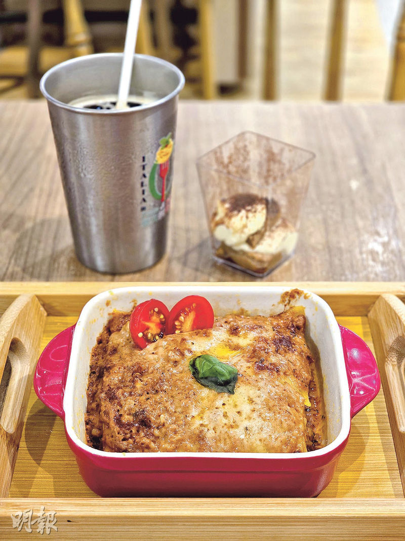 【明報專訊】親民手工意粉店Italian Corner是近期社交平台上最富話題的食肆。它5月先於恆豐中心大食代開店,7月再於尖沙嘴新港中心開分店,午市繁忙時段常排長龍。店內約6款每日新鮮製作的手工意粉,包括spaghetti意粉、linguine扁意粉、fusilli扭扭意粉及gnocchi馬鈴薯糰子等,配搭成10多款不同的經典意粉。記者訪店時,這些意粉雖然吸引,但最終還是選擇了菜單以外、每日限量供應的焗芝士肉醬千層麵($88)。千層麵柔韌帶麥香,吸收了肉香和番茄香,令人回味。單點外,店家還推出全日套餐($88起),性價比高。