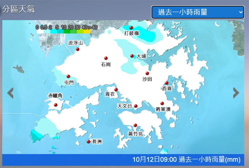 即時熱點 天氣|天文台:今早多處地區錄5毫米雨量 今日多雲有驟雨 下午部分地區雨勢較大有雷暴 (09:20) 發佈於 1 週 前 2025 年 10 月 12 日 By 明報 與廣闊低壓槽相關的驟雨及雷暴正影響南海北部及廣東沿岸。本港今早(12日)多處地區錄得約5毫米雨量。本港地區今日天氣預測:大致多雲,有幾陣驟雨。早上短暫時間有陽光,下午部分地區雨勢較大及有雷暴。最高氣溫約31°C。吹和緩偏東風。展望未來一兩日仍有幾陣驟雨。本周中後期天色好轉。 上午8時,強烈熱帶風暴娜基莉集結在東京之西南約860公里,預料向東北偏東移動,時速約26公里,橫過日本以南海域。(天文台) 相關文章:天文台天氣天氣速遞編輯推介 Up Next 天氣|天文台:周四局部地區有驟雨 日間炎熱最高32°C (21:00) 不要錯過 短片:柬埔寨邊境夜半傳怪聲 泰網紅設大喇叭施「音波功」 (18:24) 繼續閱讀 贊助商 猜你喜歡 天氣|天文台:周五有驟雨 氣溫28至32°C (19:45) 天氣|天文台:周四局部地區有驟雨 日間炎熱最高32°C (21:00) 天氣|酷熱警告生效 天文台:周末有一兩陣驟雨 (08:22) 天氣|天文台:周四天晴局部地區有驟雨 最高32°C (20:56) 今年10月已有4日達33℃以上 破1884年以來紀錄 (17:45) 天氣|天文台:天晴酷熱最高33°C 局部地區有驟雨 (08:14)