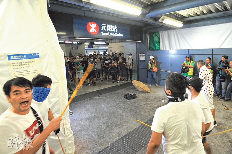 被告鄧嘉民(現年46歲)報稱商人,經營停車場生意。控方案情指稱,當晚有黑衣人聚集元朗英龍圍外的朗和路,與白衣人對峙,後來更多白衣人手持木棍、藤條到場,一路將黑衣人驅趕至元朗站外,被告被攝錄到身處白衣人群中,向黑衣人掟地盤燈及木棍。