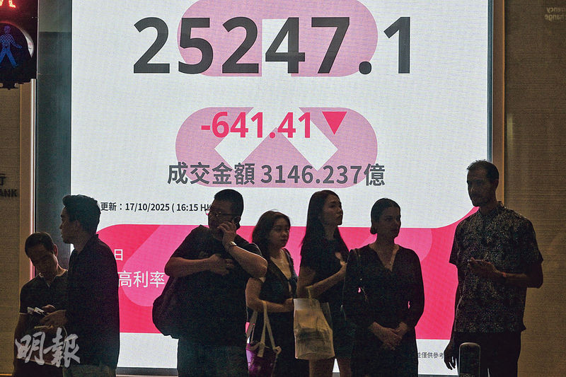 【明報專訊】市場憂慮美國兩間地區銀行壞帳惡化,反映經濟轉差,雖然憧憬減息步伐或加快,導致美匯指數弱勢,更跌至近98邊緣,惟投資者更聚焦經濟放緩風險。承接美股隔晚跌勢,除韓國股市逆市向上,亞洲主要股市全線走低,當中恒指跌2.48%,為區內表現最差,兼跌穿50天線,逼近25,000點關口。恒指主要受重磅科技股拖累,而新能源汽車股龍頭比亞迪(1211)及吉利汽車(0175)關連公司回收汽車觸發新能源車股幾近全線下跌,惟金價創新高,刺激金飾及部分金礦股續做好。