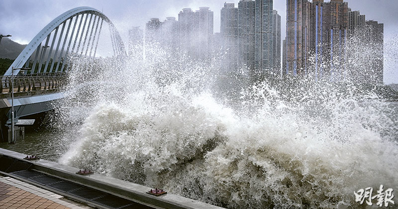 【明報專訊】上月超強颱風「樺加沙」襲港引致24宗水浸,令公眾關注本港沿岸地區受越堤浪的威脅與日俱增。本報記者翻查土拓署2021年完成的《沿岸災害研究》,發現政府當年識別出全港26個沿岸低窪或當風住宅地區中,有半數共13個地區已被評估為有可能受越堤浪威脅,其中上月打風期間出現水浸的杏花邨、鯉魚門及將軍澳海濱長廊均榜上有名。政府已陸續對該26區做改善工程,工程師學會前會長陳健碩稱,受氣候變化及水位持續上升影響,將來出現越堤浪地點會愈來愈多,政府應按個別情况檢視不同地區風險,「度身訂做」改善措施。