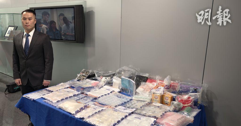 港島總區反三合會行動組高級督察吳嘉倫表示,經情報分析及深入調查,發現有人利用大角嘴一住宅單位作為製毒工場,昨日採取行動,埋伏探員於晚上發現一名男子離開單位,隨即將他截停,在其身上搜獲46克霹靂可卡因。警方其後將他押返單位搜查,發現另有兩名男子在屋內,並檢獲一批毒品,包括約1公斤霹靂可卡因、506克可卡因、775克冰毒及59粒依托咪酯電子煙蛋,以及毒品包裝工具及製毒工具,遂以涉嫌製造危險藥物及販運危險藥物拘捕3名男子。