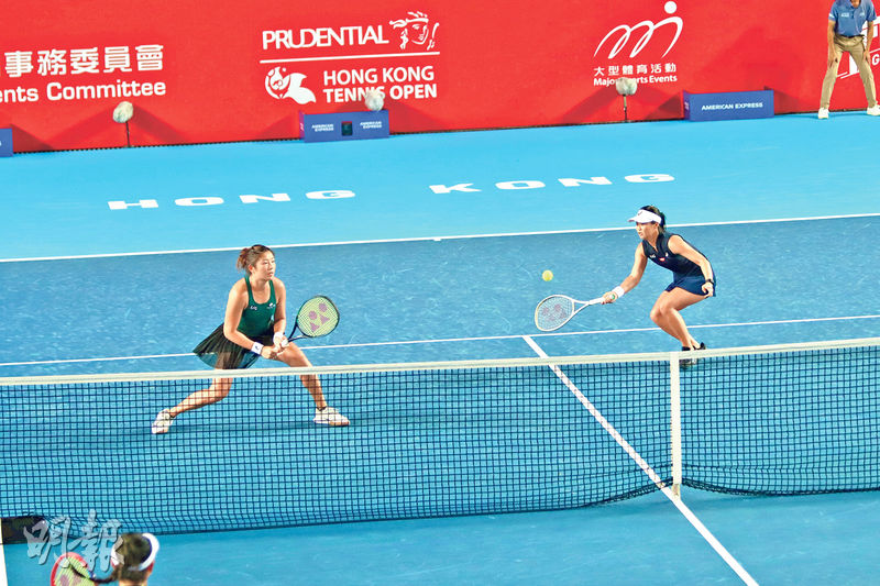 【明報專訊】WTA香港網球公開賽昨日在維園網球場續演,主場出擊的港隊組合張瑋桓(Eudice)與王康怡(Cody)在女雙首圈雖先失一盤,但在球迷熱烈打氣下,以盤數2:1反勝來自中華台北和日本的頭號種子吳芳嫺/穗積繪莉,這也是她們連續3年拍檔參賽以來,首度在港網賽女雙賽勝出。