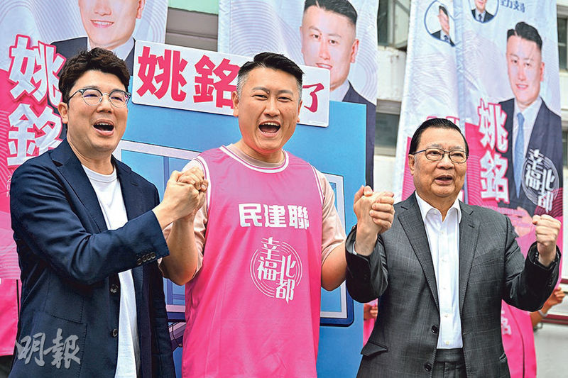 另外,新社聯譚鎮國、民建聯姚銘噚日都報名參選新界北直選。放棄爭連任嘅民建聯新界北議員劉國勳噚日就連踩兩場,先支持黨友,形容對方係「好拍檔」,之後再去撐譚鎮國,讚佢有能力、適合當選。