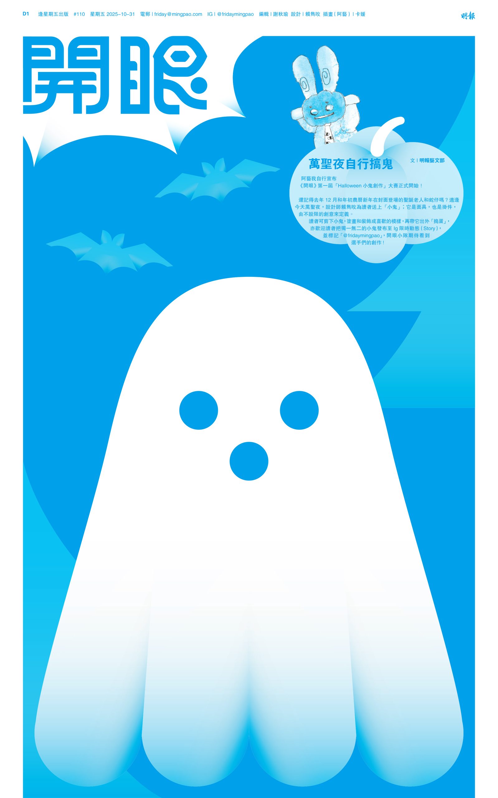讀者可剪下小鬼,塗畫和裝飾成喜歡的模樣,再帶它出外「搗蛋」,亦歡迎讀者把獨一無二的小鬼發布至Ig限時動態(Story),並標記「@fridaymingpao」,開眼小隊期待看到選手們的創作!