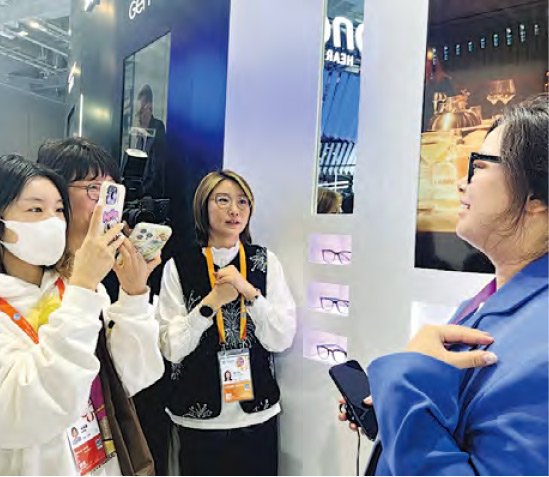 主辦方昨組織一批來自科技、金融、經濟、遊戲等領域的網紅,探訪體驗進博會各種創新科技產品。在特斯拉(Tesla)展台,一款沒有方向盤、踏板、倒後鏡的賽博無人駕駛電動車廣受注目。依視路(Essilor)首次在華展出的一款助聽器眼鏡,看上去是眼鏡,戴上能聽清交流對象的聲音,吸引網紅紛紛試戴。