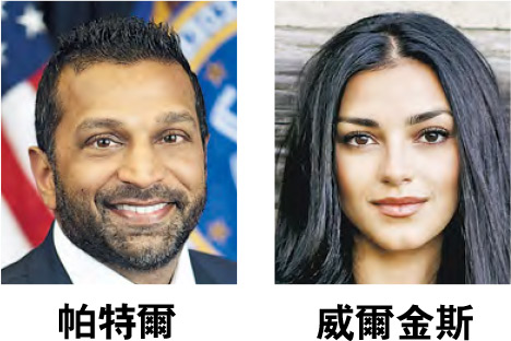 帕特爾(Kash Patel)的26歲鄉村音樂歌手女友威爾金斯(Alexis Wilkins),上月25日在賓夕法尼亞州州立大學舉行的一場摔角比賽負責獻唱美國國歌,彭博法律(Bloomberg Law)服務平台率先揭發帕特爾乘政府專機出席撐場,報道稱帕特爾對事件曝光非常憤怒,要求有27年資歷FBI重大事件應對組主管帕爾默(Steven Palmer)即時辭職或被解僱。