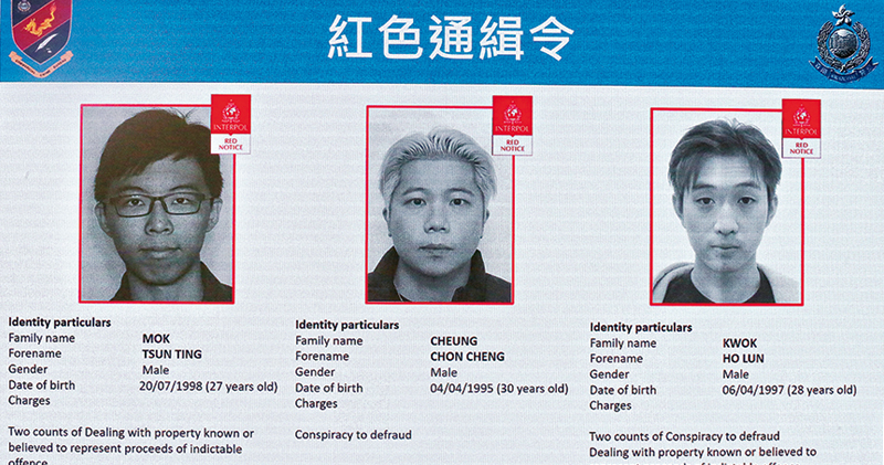 警方亦透過國際刑警向3名潛逃者發出紅色通緝令,兩人屬主腦、一人屬骨幹成員,包括27歲的莫浚廷、30歲的張駿晴及28歲的郭浩麟,各人分別涉及洗黑錢或串謀詐騙等罪。翻查資料,莫與在澳洲註冊的公司「JP-EX Crypto Asset Platform Pty Ltd」有關,為綽號「幣少爺」黃鉦傑的助手;郭為「Web3.0 Technical Support Limited」等多間公司董事,該公司前稱「JPEX Technical Support Co. Pty Ltd」。黃震宇表示,如發現3人在任何地區出現,會與當地執法部門聯絡,再思考以什麼形式追捕。