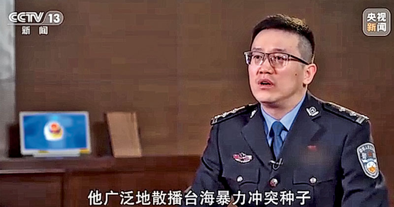 【明報專訊】重慶警方上月底對民進黨立委沈伯洋涉嫌分裂國家犯罪立案偵查,央視新聞昨(9日)播出近8分鐘專題報道「起底」沈伯洋,並引述法學專家強調可通過國際刑警組織進行「全球抓捕」與「跨境司法合作」。沈伯洋昨回應稱「別妄想用羅織罪名方式,把手伸到台灣」。陸委會形容央視「企圖將恐嚇對象擴至一般台灣民眾」,台警政署則提醒民眾「切勿協助宣傳」,以免違反「反滲透法」。