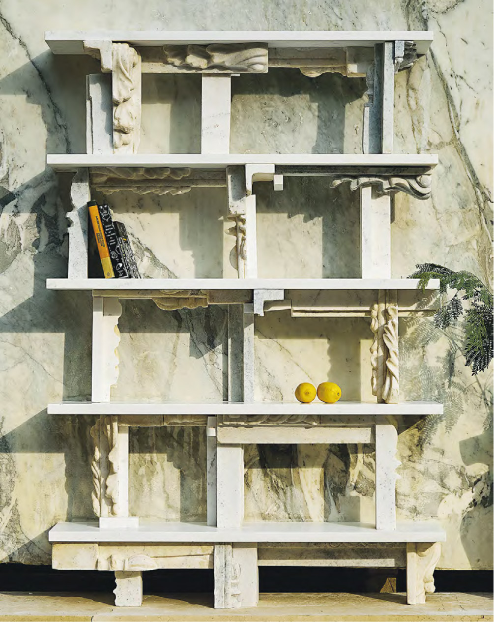 Pierre Castignola與英國石材設計工作室Agglomerati旗下、聚焦設計和物質文化的策展平台FRAGMENTA合作設計的Spolia系列,便由經典素材走入古典,深化自家作品體系。FRAGMENTA的合作伙伴是黎巴嫩大理石材品牌Najem Group & Co.。這個以次品(spoil)的拉丁文為名的系列,正正用上Najem Group & Co.工場的剩餘和廢棄石材,包括古典風格的壁爐裝飾石材,組合成儲物架、花樽、茶几和牆几等。整個手法是先以立體設計軟件,將剩材作試樣組合,再為當地工匠製作組合手冊,是科技與工藝的結合。就算並非古典風格的愛好者,看着Pierre Castignola的拼合手法,也的確感受到他為古典風格石材帶來的現代感,其設計古今並重的玩味取向,帶來歷久常新感覺。而當中最驚艷的設計必定是書架,配合其不同深淺的白,不難想像它能成為時裝品牌Maison Margiela店內的陳設,又或於家中作陳列架或書架。FRAGMENTA平台本身也有多個作品用上古典風格剩餘石材,但Spolia系列卻散發不一樣的氣質——而不論是設計界或不同生活層面,氣質正正是千金難求的獨特素質。