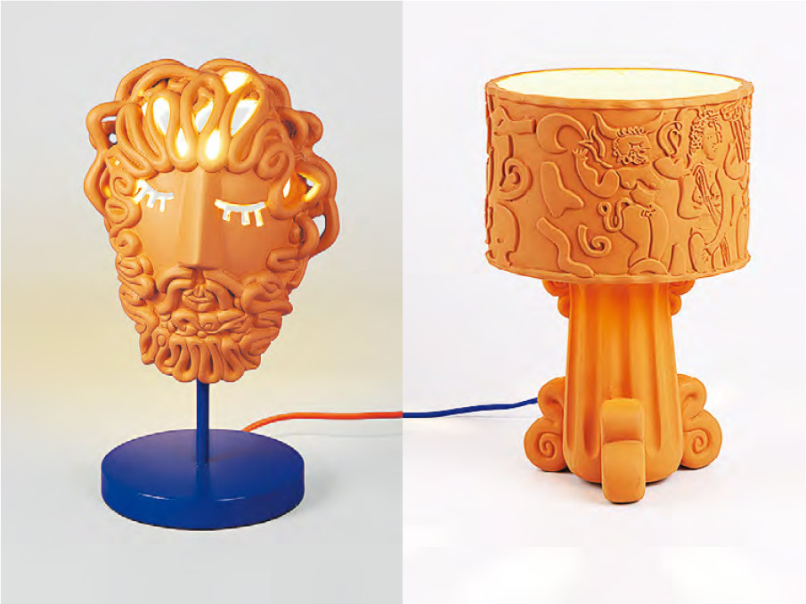 【明報專訊】談及古典幽默化的設計,當然少不了意大利經典的Seletti。這個於1964年由Romano Seletti創辦的品牌,自兒子Stefano Seletti於1987年加盟主導品牌的創意發展後,注入了不少新元素。不少作品均帶點Kitsch感覺,帶點壞男孩口味,例如由Uto Balmoral為品牌設計的Wonder Lamp系列,於古典風格頭像加入有如吹波膠的燈泡,為品牌代表作。最新的Magna Graecia系列由Antonio Aricò設計,以赤陶(Terracotta)為素材,為系列帶來南歐風情,同時以較卡通的線條演繹傳統古典風格如面具(圖b左)及壁刻(圖b右)等,有別於品牌過往的「衰仔」取向,風格偏向童趣。Terracotta lamp – Ulysse mask 180歐元(約1620港元)、Magna Graecia Outdoor Lamp -DEA 250歐元(約2249港元)/ https://www.seletti.it