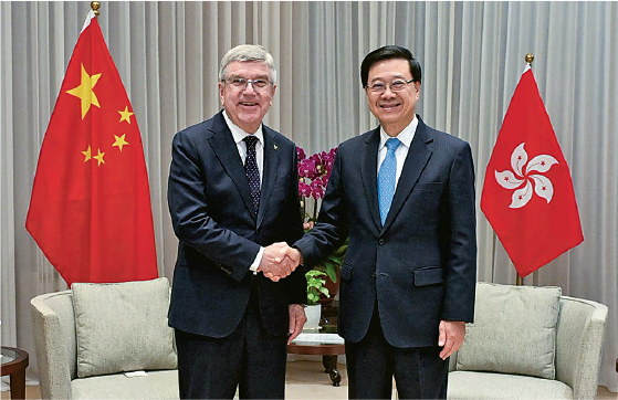 巴赫昨日亦與特首李家超會面,李向巴赫表示將支持港協暨奧委會明年12月在港舉辦2026年國家和地區奧委會協會全體代表大會,相信屆時將為來自各地的與會者「帶來結合體育、會議與旅遊的獨特體驗」。