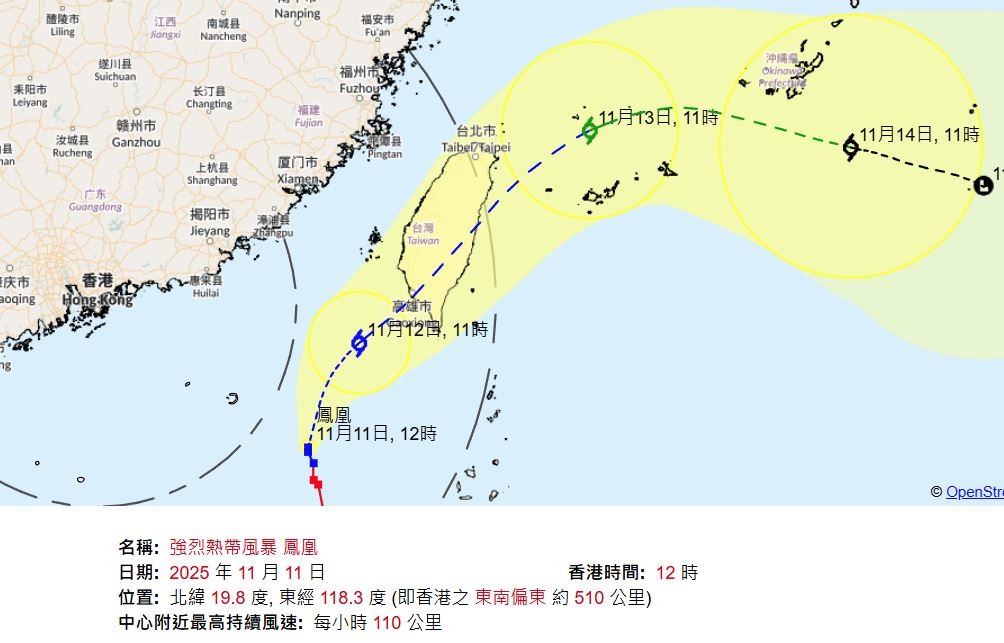 預料鳳凰會在今日稍後至晚間最接近本港,於香港以東400公里以外掠過,隨後移向台灣一帶,逐漸遠離本港並減弱。除非鳳凰採取較為接近廣東沿岸的路徑,否則改發三號強風信號的機會較低。隨着鳳凰遠離,本地天氣會繼而受東北季候風主導。天文台屆時會視乎本地風力變化,考慮以強烈季候風信號取代一號戒備信號,或取消所有熱帶氣旋警告信號。