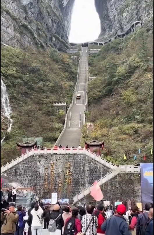 內地奇瑞汽車「風雲X3L」11月12日在湖南張家界天門山景區進行挑戰測試,試圖爬坡開上999及台階、最大坡度達45度的300米天梯,半路失敗溜後,從台階下滑撞斷部分護欄,事件引發網絡熱議。