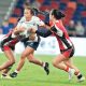 2013年遼寧全運首設七欖項目,港男隊當年打入決賽不敵山東隊摘銀。男、女子七欖港隊相隔兩屆再戰全運,男隊今屆A組首擊即對頭號種子兼3屆全運冠軍山東隊。港隊昨午坐陣啟德,甫開賽即由拜恩菲立斯左路達陣先拔頭籌,其後拜恩塞巴與麥浚勇先後達陣,連同菲立斯兩附加罰球,港隊曾領先19:0。山東隊完半場前達陣及附加罰球追至7:19。