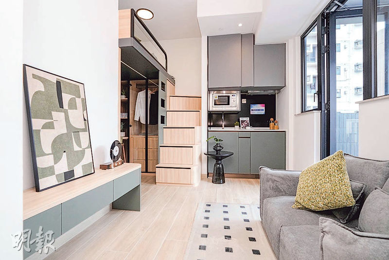 3個示範單位均位於22樓,其中2個屬開放式單位,包括實用面積237方呎A室,客飯廳長約5米、闊約2米,開放式廚房位於單位正中位置,劃分廳區及寢區,浴室屬明廁;實用面積223方呎E室,已設多功能組合牀,上層為寐區,下層設書桌及衣櫃,樓梯級亦設櫃桶。至於2房示範單位則為D室,實用面積309方呎,開放式廚房設計,兩間睡房分佈在客廳兩旁,省卻走廊位。