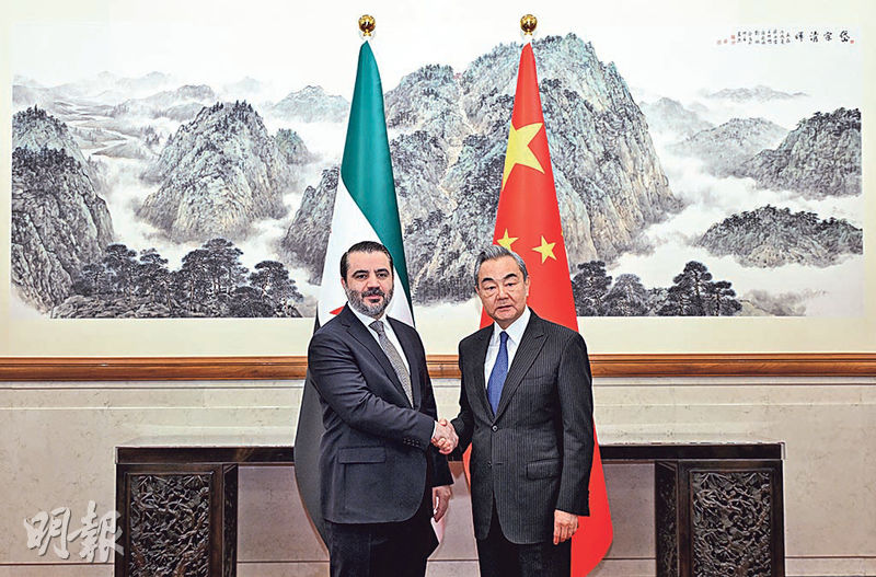 【明報專訊】中國外交部長王毅昨在北京同來華訪問的敘利亞過渡政府外長希巴尼舉行會談。王毅強調,「東伊運」是聯合國安理會認定的國際恐怖組織;敘方承諾不允許任何實體利用敘領土損害中國利益,中方對此讚賞並希望敘方採取有效落實措施,為中敘關係平穩發展掃清安全障礙。