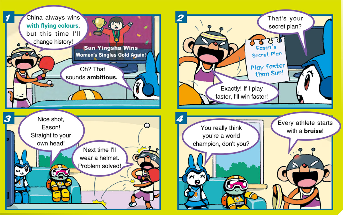 教育 Comic : The rise of a pingpong legend 發佈於 2 天 前 2025 年 11 月 19 日 By 明報 【明報專訊】The Smarties and Eason are watching TV at home, Eason is practising pingpong. 相關文章:Smarties\' Power English 第453期 不要錯過 出路解惑:翻譯重理解 AI難取代 繼續閱讀 贊助商 猜你喜歡 Talk of the town : Hong Kong movie Talk of the town : Why are Hong Kong films losing popularity? Grammar : Giving advice