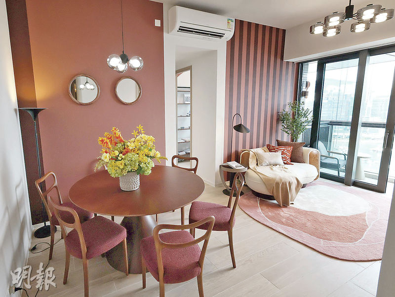 較早前開放的全新示範單位,為第1座28樓A室,實用面積666方呎,樓層高度3.2米,營造出良好的室內空間感,屬3房1套連儲物室間隔;單位設計以米白色、香檳色及暖木色為主調,風格清新簡約,亦帶點現代航海元素,實用空間與收納並重。