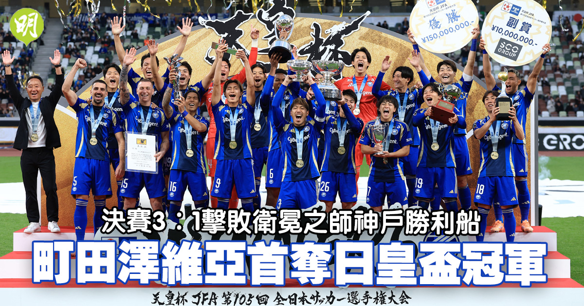 日本天皇盃決賽今(22日)於東京國立競技場上演,最終町田澤維亞憑前鋒藤尾翔太梅開二度,加上日本國腳相馬勇紀的入球,以3:1擊敗衛冕的神戶勝利船,首奪國內頂級賽事錦標。