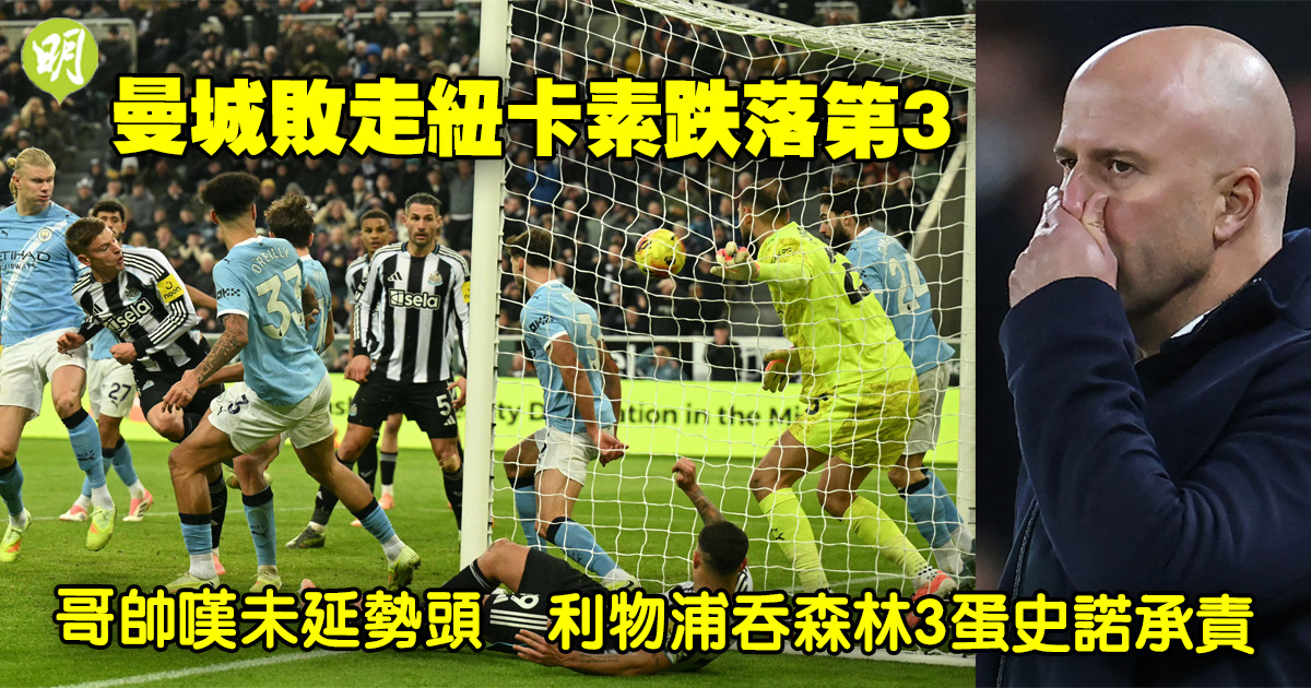 英超|曼城敗走紐卡素跌落第3 哥帥嘆未延勢頭 利物浦吞森林3蛋史諾承責 (16:29)
