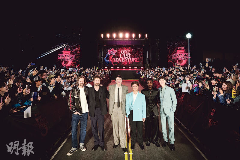 【明報專訊】影視串流平台Netflix劇集《怪奇物語》第5季兼最終章本周四(27日)上架,製作人戴菲兄弟(Duffer Brothers)率領一眾主角展開全球宣傳之旅,日前亦在東京告一段落,吸引超過2000粉絲擠滿紅地氈兩旁,劇中飾演Mike的芬禾夫赫特(Finn Wolfhard)表現興奮:「我們在世界各地巡迴宣傳一個月,能夠以東京作為尾站真的太好了!」昨日Netflix公開《怪奇物語5》終極預告,來自顛倒世界的怪物「魔神」肆虐霍金斯鎮,正邪大戰一觸即發。
