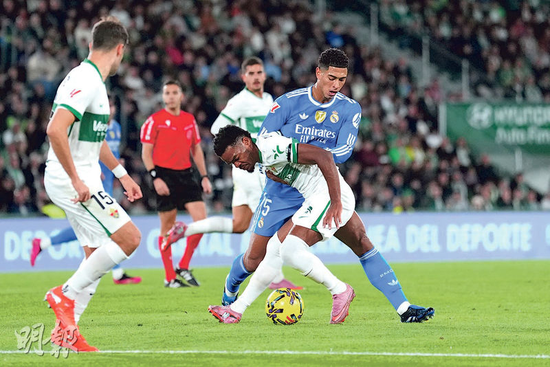 【明報專訊】榜首皇家馬德里昨在西甲雖有英格蘭國腳中場祖迪比寧咸入球兼助攻,惟作客僅以2:2逼和中游分子艾爾切,聯賽兩連和再度失分下,被死敵巴塞隆拿追近至僅1分差距。而會方賽前在例行股東大會上,因悼念已故英超勁旅英超利物浦前鋒迪亞高祖達與其兄弟安達施華時使用錯誤圖片,需就事件公開致歉。
