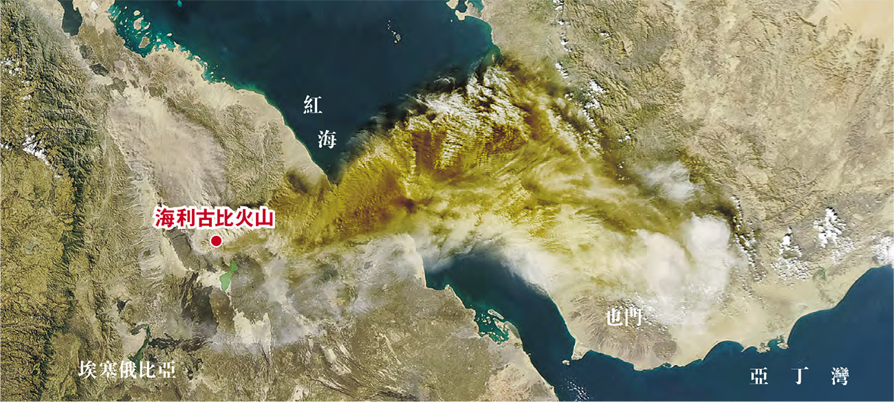 【明報專訊】埃塞俄比亞東北部的海利古比火山(Hayli Gubbi volcano)在沉寂近1.2萬年後,周日(23日)首次爆發,噴出的煙柱高達14公里。由於火山灰越過紅海飄至印度,恐影響航空安全,印度兩間航空公司周一及周二取消了部分航班。