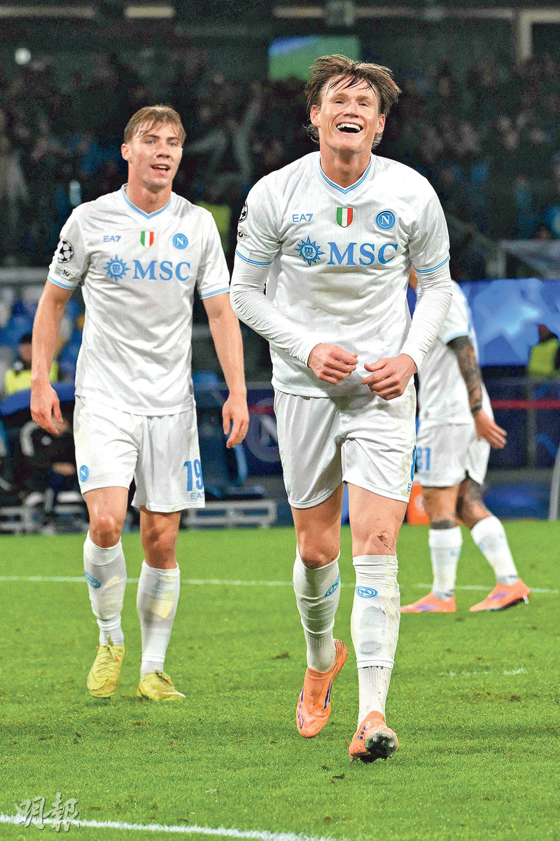 【明報專訊】意甲雙雄拿玻里及祖雲達斯昨晨在歐聯聯賽階段第5輪分途奏凱,其中前者在主場以2:0擊退阿塞拜疆球隊卡拉巴克,以一場勝仗悼念阿根廷籍名宿馬拉當拿離世5周年,另「老婦人」在嚴寒下作客擊敗挪威球隊波杜基林特,5輪過後終打開勝利之門。