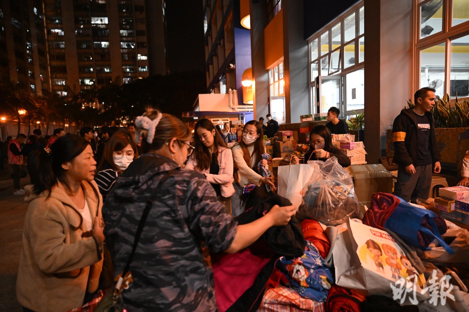 大埔宏福苑五級火持續,火災下大批居民疏散且無家可歸,不少人則帶同物資到大埔支援。在大埔的中華基督教會馮梁結紀念中學,入夜後不斷有人自發運送物資到場,包括毛毯、飲品等。