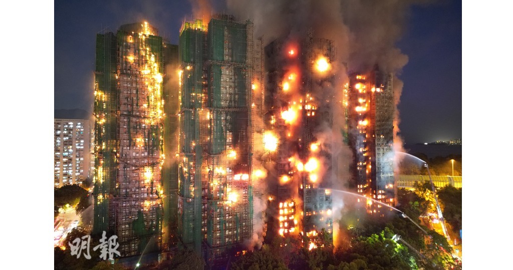 大埔宏福苑發生五級大火,火勢快速蔓延,共7座大廈起火,原因疑是各大廈外牆棚網、防水帆布等不符防火標準。有外國專家認為,宏福苑五級火的情況,如同2017年釀成72死的倫敦公共住宅大樓格倫費爾大廈(Grenfell Tower)沖天大火的翻版,加上火舌由一座大廈蔓延至鄰近大樓,造成骨牌效應,火場不斷擴大,令消防員難以應對,大大增加滅火難度。