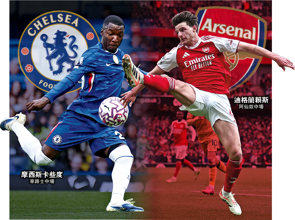 【明報專訊】今輪英超上演車路士主場迎戰阿仙奴的倫敦一哥之爭。「藍戰士」目前12戰得23分,明晨若能乘各賽事三連勝強勢,擊敗現12戰29分放領的「兵工廠」,雙方分差將拉近至3分;反之阿仙奴將進一步鞏固榜首優勢。雙方今季中場3人組合當中,皆由「億元先生」摩西斯卡些度及迪格蘭賴斯擔任核心,今仗亦成2人爭奪英超最強全能中場之戰。