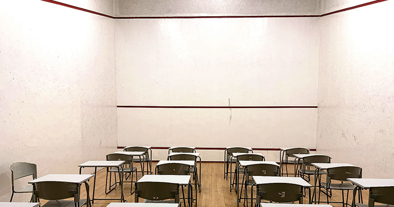 【明報專訊】大埔宏福苑上周五級火,有災區學校今日改為網課。位於大埔的教育大學上周宣布將體育館改裝為支援中心,記者昨到訪教大所見,壁球場、舞蹈室等已變成臨時課室、擺滿枱櫈,校方稱已準備就緒,並與區內不同學校最後磋商。另外,新界校長會主席朱偉林稱該會已籌約50萬元,初步擬向宏福苑每名受影響並獲該會大埔區會員校長推薦的學生派發1萬元緊急援助金。