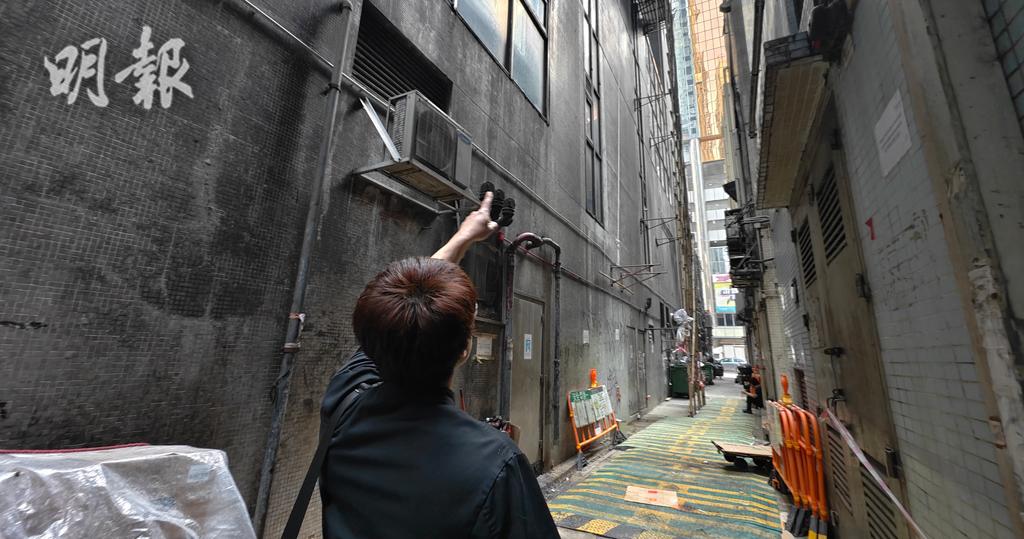 記者今日返回現場了解事件,見到涉事後巷地下有血迹及一頂染血漁夫帽,大廈外牆有一個竹棚。附近食肆職員李先生說,他常常經過後巷,有時見到地下有建築工程工具,都擔心會有工具不小心跌下來,加上他之前曾親眼目擊石屎跌落,故「好驚行呢度」,唯有自己提高警覺。李稱不認識女事主,希望傷者能早日康復。