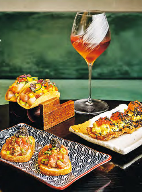 【明報專訊】近年酒吧愈開愈多,各具個性。例如剛於中環荷李活道開業的日式酒吧YUME,名字取自日語「夢」,糅合東瀛風情與現代調酒技術。酒吧首次推出雞尾酒單Dream Is Destiny,靈感來自日本食材、風味,It Was All a Dream以黑朗姆酒和裸麥威士忌為基底,加上菠蘿椰子,濃濃果香極有熱帶風情;F.YU混合日產六角氈酒、燒酒,再加上常見日本食材紫蘇與哈密瓜,帶來清新怡人的日式風情。對於有選擇困難症的客人,可透過摺紙「命運占卜師」選酒,享受開盲盒般的驚喜。除了調酒,YUME的餐點同樣令人期待,推薦魚子醬吞拿魚他他、吉列伊比利豬扒三文治、迷你和牛漢堡等,就算空肚赴約,或喝酒時想配搭小食,總可以找到合適美食。