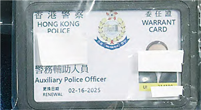 警方調查後拘捕一名22歲報稱公關的本地女子,她涉曾協助收取現金。行動中,警方在被捕人住所檢獲一張虛假的香港輔警委任證及一張虛假的內地協警工作證。